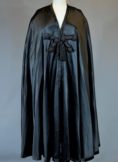 A British Black Satin Burnous/Evening Cape Circa 1920/1940