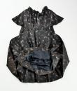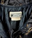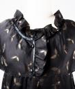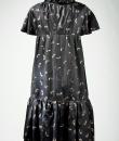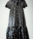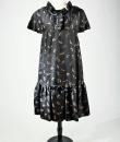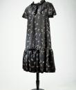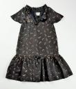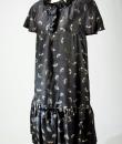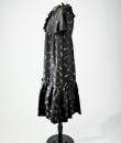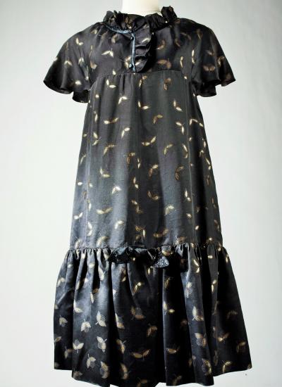 Rare model of Baby Doll Dress by André Courrèges Haute Couture model 23075 and dating from the late 1960s. Short sleeveless dress, Trapeze shape, high waist with large pleated flounce on the hips. Black satin acetate embroidered with a seeding of silver lurex leaf flowers. Ruffled collar covering the shoulders and front closure by two buttons highlighted by a black lurex bias with a reminder of a bow in front of the bottom of the dress. Sheath underdress in black nylon and label indicating Courrèges Paris Made in France size O. No defect. Very good condition of color and conservation.