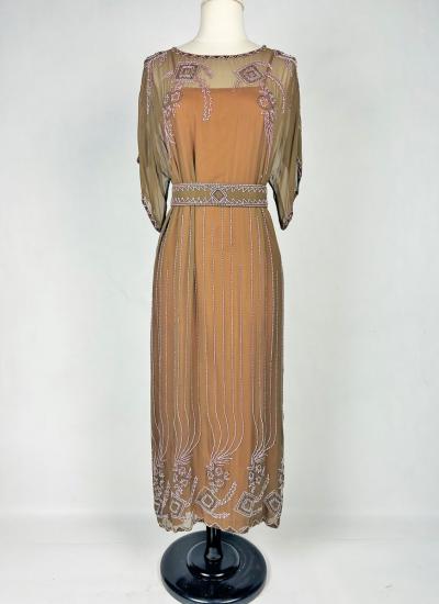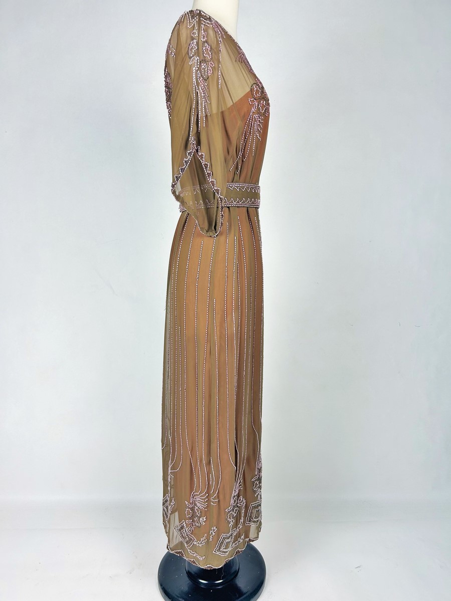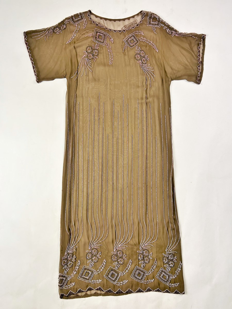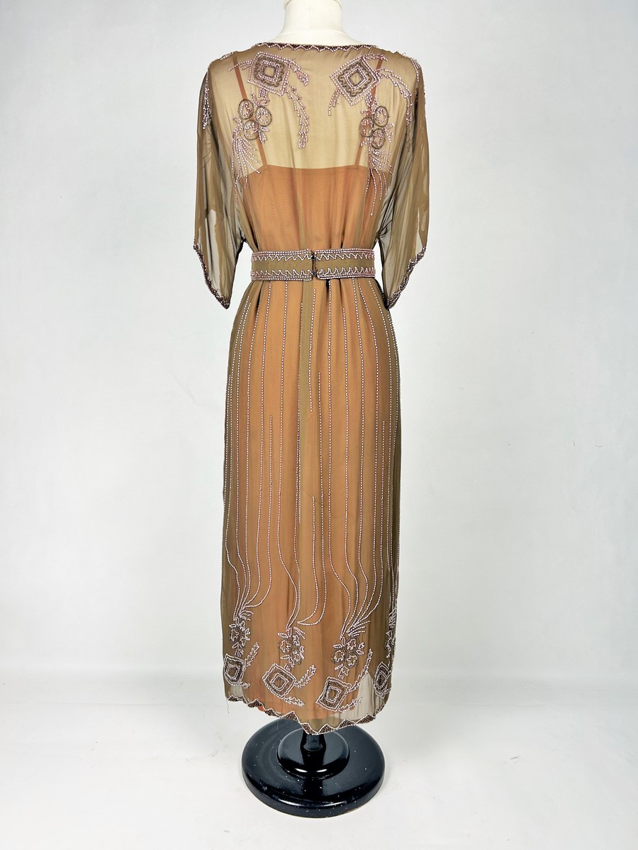 An Art Deco Chiffon dress embroidered with glass beads - France Circa 1920