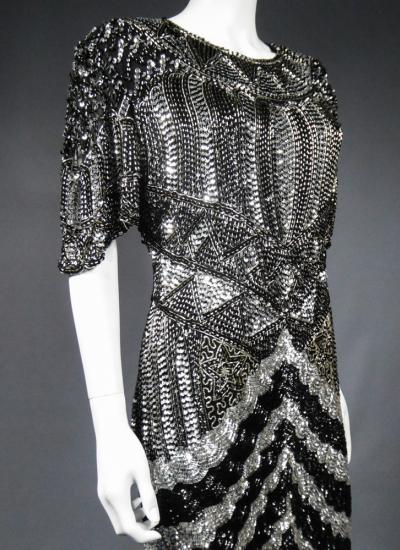 Music-Hall Evening Dress Embroidered with Black and Silver Sequins Circa 1980