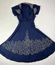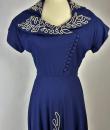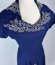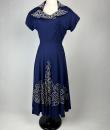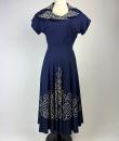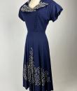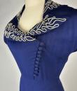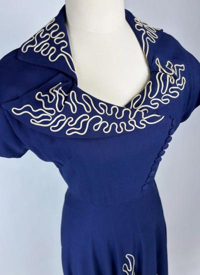 A Navy French Day Dress with white piping appliqué Circa 1945-1950