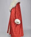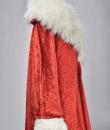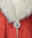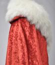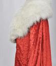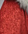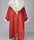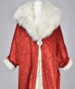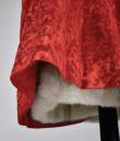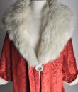 Large coral red waffle velvet evening or opera coat with Siberian white fox collar and cuffs dating from the 1930s. Masterful Kimono cut with bat sleeves and matching white fur lining (rabbit?). Silk velvet embossed with Art Deco stylised floral motifs. Large mother of pearl buttons. No defects. Excellent condition of colour and conservation.