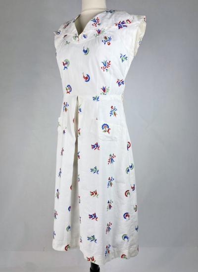A patriotic dress in embroidered cotton dating from the Liberation of France Circa 1945