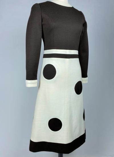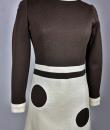 Space Age dress in cream and chocolate wool jersey in the style of Pierre Cardin Circa 1970