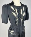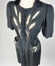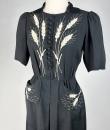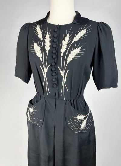 Little black dress with embroidered ears of wheat - France Circa 1945