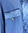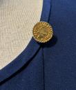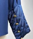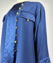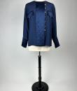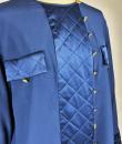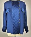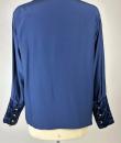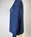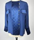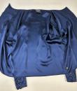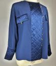 Navy crepe blouse from Chanel Boutique dating from the Lagerfeld years when he was head of this famous House. Loose, flowing blouse with cross-buttoning. Complete with 19 gold metal buttons with the Coco Chanel logo, Paris France. Quilted satin with stitched diamonds on the pocket flaps, front bib and buttoned cuffs. No lining but reversible satin crepe on the inside. Chanel Boutique label. No apparent flaws. Very good condition in terms of colour and conservation.