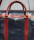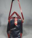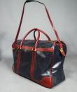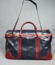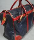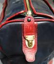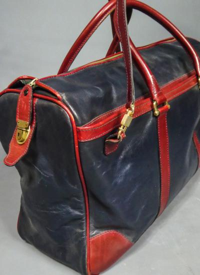 Travel or Weekend bag in two-tone leather from the luxury leather goods designer house Clément in Lyon and dating from the 1980s. Beautiful luxury collection item from French tradition in supple, waxed burgundy and navy blue leather. Double reinforced handles, zip fastening with flap (without key). Two zip-up pockets on the sides and one inside which is in beige toile. Long strap with padlock. Very slight scratches at the corners under the bag, but no major flaws, very clean bag not or very little used. No visible scratch on the leather but beautiful patina. Very good condition of color and conservation.