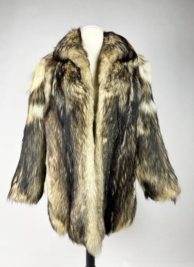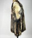 A women's thick vintage fur coat in marmot (?) dating from the 70s or 80s. Three-quarter length coat with shawl collar and long sleeves, with three hooks for the front fastening. Very soft, dense long-haired fur in delicate shades of brown, cream and white. Taupe acetate satin lining with the French label Colette, Artisan Fourreur, 20 Rue Alsace Lorraine in Roanne, indicating a size 42. This type of coat is close to the models produced by the great French Maisons such as Hermès, a tradition stemming from French furriers. No flaws and very clean. Good condition in terms of colour and conservation. The hair is stable and very soft!