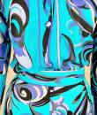 Nicknamed "the prince of prints", Emilio Pucci (1914-1992) left his mark on fashion history with his pop prints, flashy colours and graphic patterns that inspired fashion in the 1960s. His style was characterised by flashy, colourful prints combined with stretch fabrics. Her glamorous, feminine outfits in acid colours and psychedelic patterns are graphic and very cheerful.