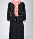 A Gabrielle Chanel Haute Couture Woollen and golden lamé skirt suit named Hortensia Circa 1968 -1970