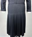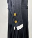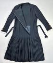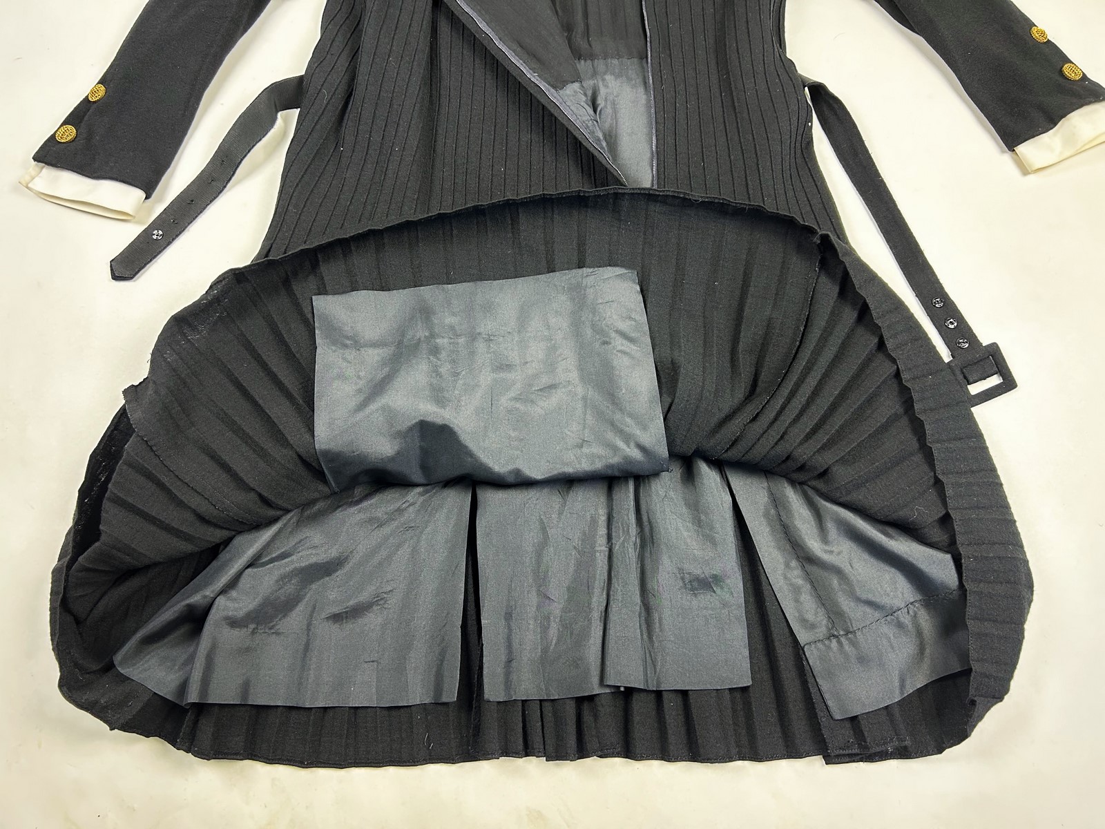 The ‘little black dress’, one of Chanel's most popular and enduring contributions to women's fashion. In all its layered details, a simple fabric, wool jersey, becomes elegant thanks to superior sewing techniques. Couture details such as visible seams, carefully arranged pleats, the finely finished hem of the skirt and the hand-sewn belt make this ensemble an example of Chanel's characteristic “luxury poverty”, an expensive interpretation of a simple design made from modest materials. Chanel appropriated sewing details from riding outfits, menswear, and service uniforms in her quest to reduce and refine women's clothing to its simplest and most elegant expression.