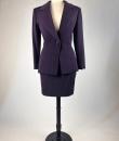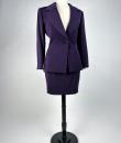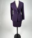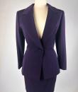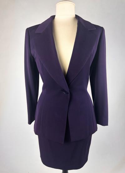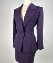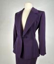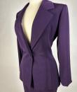 Haute couture skirt suit by Gianfranco Ferré for Christian Dior dating from the 1990s. Tuxedo jacket and fitted skirt in cardinal purple wool twill. Hip-length fitted jacket with large shawl collar closed and crossed at the front by a single matching button with the Dior logo on the back. Square cut without epaulettes and long sleeves with slits at the cuffs. Close-fitting skirt with fine darts and back zip. Fully lined in matching purple silk satin with a beautiful Couture finish. Christian Dior haute couture Paris label. Exemplary sobriety and elegance. No flaws, little or no wear. Very good colour and condition.