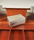 Elegant vintage Hermès travel case with toiletries in a red Hermès leather case with compartments. This case is stamped Hermès Paris in gold lettering and closes with two H-shaped aluminium clips. Serial number 2948 inside. It contains two Macassar ebony and boar bristle brushes, two brushed silver metal bottles and a powder compact, a shoehorn, a leather case for a missing nail file, a large leather box with cream plastic compartments (slightly deformed), a leather manicure set with nail clippers, tweezers and scissors, and two small compartments with missing containers. Very slight scratches to the leather and a few items missing as described above. Very good structural condition. Fetish piece to collect or for decoration.