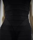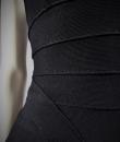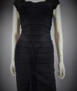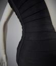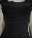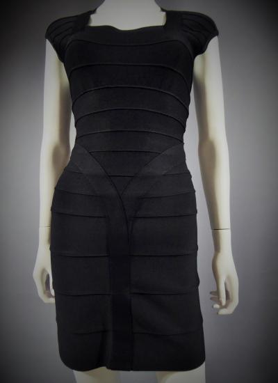Hervé Léger black mini dress. Bodycon dress with short sleeves made from an assembly of stretch fabric bands commonly used in the field of lingerie. Square collar, marked size. Very good condition. Size 36 french.