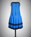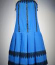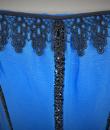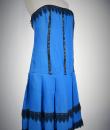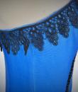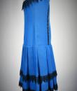 Beautiful cocktail dress by Hubert de Givenchy, Nouvelle Boutique that the designer opened at 68 Rue Victor Hugo in Paris in 1968. In the spirit of Baby Doll, this trapeze dress, with a large bare back neckline is made of electric blue silk gazar embroidered with black sequins and applied with openwork lace type Caudry. Low waist mounted with large hollow pleats flaring into the skirt lined with blue silk crepe. These are the beginnings of the Prêt à Porter and these models are close to the Haute Couture by the materials used and finishes Couture entirely handmade. Bustier whalebone in the back, lined with blue taffeta. Label Givenchy Nouvelle Boutique Made in France Paris. The darts of the waist have been widened which gives this silhouette Trapeze! No damage, clean dress, no holes or stains. Very good condition of color and conservation.