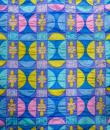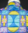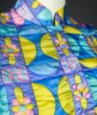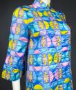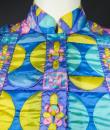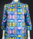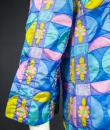 Amazing Pop Art coat dress by Jacques Dessange, famous hairdresser of the Stars who opened his first salon in 1954 at 37, avenue Franklin Roosevelt Paris 8. Very fine flocked and printed nylon with psychedelic patterns in shades of blue, yellow, mauve and pink . Loose coat  with small Mandarin collar and long sleeves, closed at the front with matching buttons. Original label in printed silk indicating Jacques Dessange Boutique 37 av Franklin Roosevelt Paris 8. Besides its main hairdressing activity, The historic house also had a shop with so-called derivative products containing leather goods and a line of clothing. Very good condition of color and conservation.