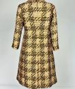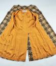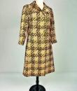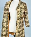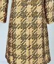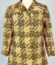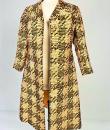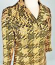 Printed silk lady's coat from the Jean Hercey fashion house, 98 rue du Faubourg Saint Honoré, located next to the Palais de l'Elysée in Paris and dating from the 1960s. Interesting print on silk twill of yellow, white and black polka dots creating a visual checkerboard effect. Loose-fitting coat, collar with rabbet points and fastened at the front by four large matching buttons. Beautiful pintuck work, revealing two side slits for pockets and a large slit at the bottom of the back, giving a trench coat effect. The coat is fully lined in mustard yellow silk pongee and finished entirely by hand. There are no visible flaws in this coat, which has been beautifully primed. Little or no wear. Very good colour and condition.