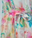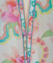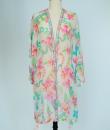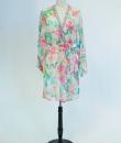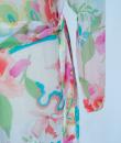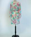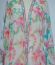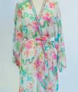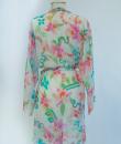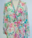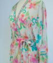Elegant printed silk muslin indoor bathrobe from the Ratti collection in 2007. As new, never worn, with its belt and original label dating from 2007. Beautiful 100% silk muslin, cream background, printed with Japanese flowers in a camaieu of pastel colors and Leonardo graphics. No lining. Original cardboard label mentioning Léonard Lingerie size 38. Excellent condition of color and conservation.