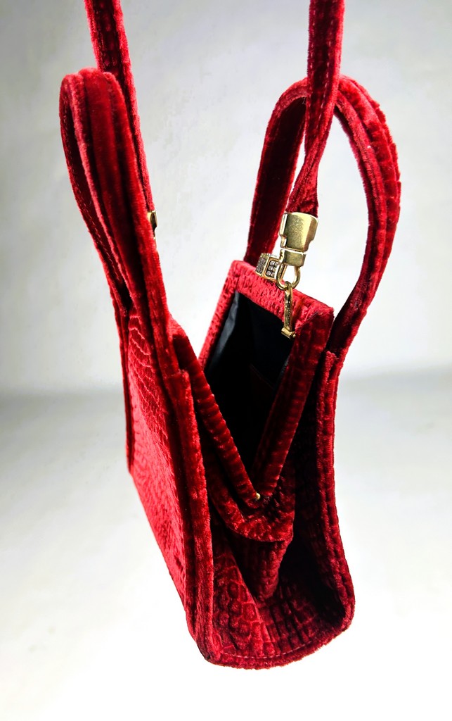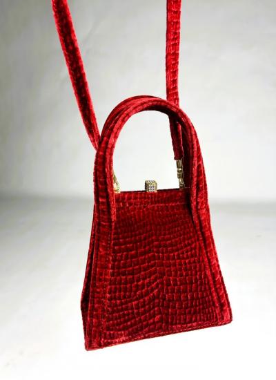 A cardinal red embossed velvet clutch bag from Lanvin - France Circa 1980 - 1990