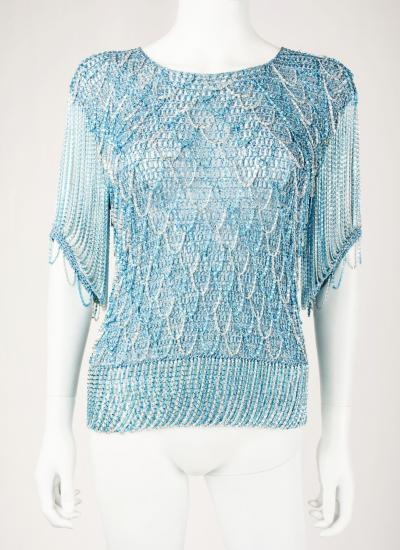 A Loris Azzaro Couture Top in Lurex knit and sky blue and silver chains Circa 1970
