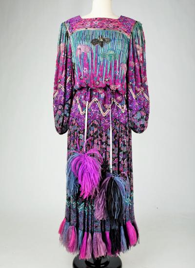 A Louis Féraud Couture Embroidered Chiffon Dress & Ostrich feathers - Fall Winter 1981-1982