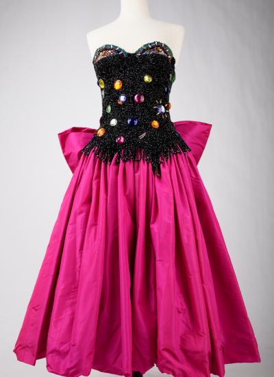 Fuschia Taffeta evening dress with beaded Bodice by Louis Féraud Haute Couture - Fall-Winter 1986-1987 Collection