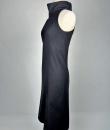 Little black dress or Couture cocktail dress in wild silk fabric by Christian Dior, directed by Marc Bohan. Sleeveless sheath dress with a high Mao-style collar. It is treated asymmetrically, with the fabric on the bias and the zip fastening in line with the right shoulder in the back. Complex, asymmetrical cut with black taffeta under-dress, zipped from the inside and expertly fastened with press studs on the back of the collar. Inner waist belt in black elastic and green catwalk bolduc showing the number 154 at the Hôtel Georges V in 1966, concealed in the slit at the bottom of the dress. The level of construction of this dress and the couture finishes are worthy of the world's greatest haute couture house. Labelled Christian Dior Paris Printemps Eté 1966 numbered 130259. Flawless dress. Very good colour and condition.