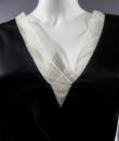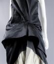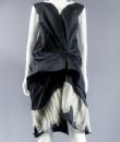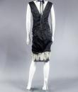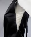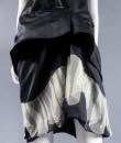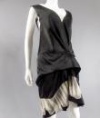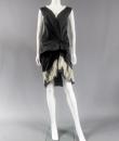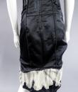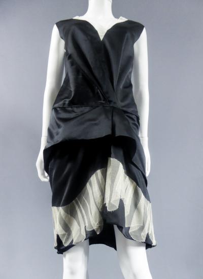 Marc Jacobs black waxed satin black dress, cut inspired from the 1920s revisited in a modern way, typical of the designer's spirit. On the bottom of the skirt, pleats of ecru cotton tulle, a plated flounce in the trompe l'oeil style. Detail of off-white cotton tulle, V-neck on the front and back of the dress, and under the neck of the arms. Detail of pleated ruffle at the waist. Black satin ribbon on the back. White graphic label on black background. Very good condition and color.