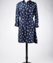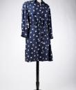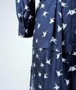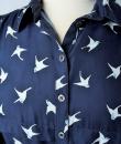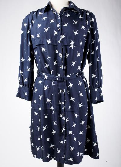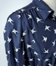 A Blouse dress in navy silk printed with swallows by Nina Ricci - France Circa 2000