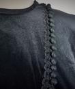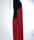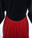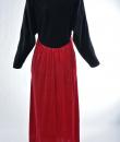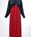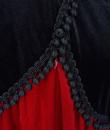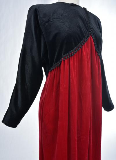 Beautiful evening dress in black and crimson red velvet by the famous American designer Oscar de la Renta and dating from the 1990s. Obvious wink to the Hispanic culture! Loose fit with high waist pleated under the chest highlighted by a braid in black silk trimmings. Asymmetrical treatment by crossing in front, with zip closure and snaps. Beautiful sleeves with Kimono cut. Two side slit pockets. Claw indicating Oscar de la Renta USA, Saks Fifth Avenue of the famous New York store. No defect to note. Good condition of color and conservation.
