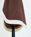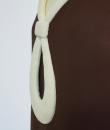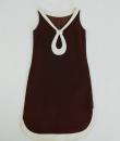Astonishing dress from the futuristic or Space Age period by Pierre Cardin dating from the early 1970s. Sleeveless pinafore dress in thick chocolate jersey. Large pointed neckline underlined by a large cream bead in the shape of a lunar medallion with oval recall on the bottom of the dress slit on the sides. Brown nylon lining with zipper in the back and very nice hand-stitched finish. Black and white woven label indicating Pierre Cardin Boutique Paris. Some very light micro soiling and small threads pulled on the cream parts, only defect noted and not very visible. Otherwise clean dress without spot or hole. Good general condition of color and conservation.