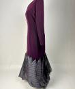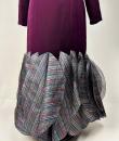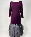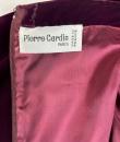 A long evening dress in Burgundy velvet by Pierre Cardin Haute Couture dating from the 1980s. Sheath dress with boat neckline and long sleeves zipped at the cuffs. The bottom of the dress, slit on one side, is adorned with a mille-feuille of large petals in striped lamé silk organza that moves elegantly as you walk. Lined and underdressed in burgundy  taffeta, with the Pierre Cardin Paris Made in France label. An identical black dress was worn by French actress Jeanne Moreau with Pierre Cardin at the Festival de Cannes in 1976. The burgundy silk velvet panne is of extremely high quality, with no marks on the velvet except on the collar, a slight mark (not very visible) from an old necklace. No other defects to report. Very good colour and condition.