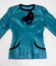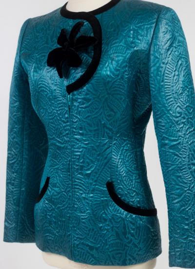 Turquoise Cloqué Satin Stone Cardin Tailor Jacket with Provenance Circa 1985