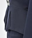 Iconic skirt suit in black Polyester Tergal by Thierry Mugler dating from 1990/2000. Fitted and architectural jacket, collar raised and basques flaring on the hips, underlining the waist. Front closure with a large Modernist chrome steel buckle. Two small side pockets and lining in nylon taffeta with the Made in France Thierry Mugler Paris brand. Tight skirt with yoke in the front, slit in the back, with zip and press studs. Iconic model of the House of Mugler to collect or to wear. No defects to note, little or not worn. Very good condition of colour and conservation.