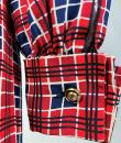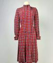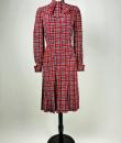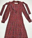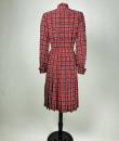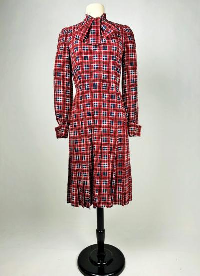 Beautiful Chemise dress by Yves Saint Laurent Haute Couture from the Spring Summer 1972 fashion show. Fluid silk crepe taffeta with a plaid print, whose chromatic range is the Master's signature (colour of the Rive Gauche logo). The cut magnifies a classic chic and relaxed style with this straight cut, sleeves with small puffs and skirt with flat pleats from the hips. Thin scarf integrated into the collar that ties in front of the neck and small epaulettes. Buttoning at the front under the placket with press studs. Elegant golden glass cufflinks on the cuffs. Atelier Blanche et Jean-Pierre, passage number 28 of the fashion show. Haute Couture label indicating Yves Saint Laurent Paris, made in France. No defects to report, clean dress. Very good condition of colour and conservation.