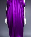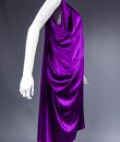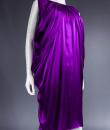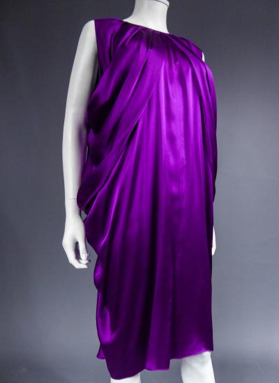 Yves Saint Laurent sleeveless dress in amethyst silk satin. Spring Summer 2008 collection by Stéfano Pilati. Variation passage no. 14. Round neckline underlined by flat pleats with draping effect all along the dress. Label white background black graphic Yves Saint Laurent Made in France. Excellent condition of color and conservation.