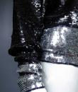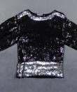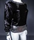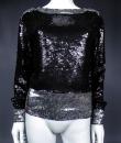 Top entirely embroidered with black and silver sequins by Yves Saint Laurent Rive Gauche dating from the 1984 Collection. Round low-cut neckline, long sleeves and closure with two zips on the sides and snaps on the shoulders. Embroidery in sequins lying in fish scales. Very Music Hall effect thanks to the silver border at the neck, shoulders, wrists and waist, underlined with embroidered iridescent tubular beads. Lining in black rayon. Label white background black graphic Yves Saint Laurent Rive Gauche Paris. Excellent condition of color and conservation.