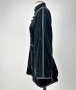 Raven black cut velvet coat jacket by Yves Saint Laurent Rive Gauche from the Ballets Russes Opera Collection dating from 1976. Fitted with an officer's collar, long sleeves and black plastic buttons with black cord piping. Skirted effect from the waist to the hips, emphasised by ribbons of black trimmings and echoed on the collar, cuffs, shoulders and bust. Fully lined in black cotton with the famous Saint Laurent Rive Gauche Paris Made in France label. No flaws to report. Very good colour and condition.